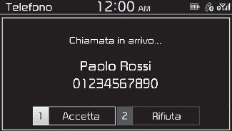 Per rifiutare la chiamata, premere il pulsante [2] sul pannello di controllo per selezionare Reject (Rifiuta).