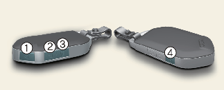Om du trycker på knappen för att låsa dörrar (1) eller knappen för att öppna bakluckan (3) när smart öppning av bakluckan med auto-öppning inte är i fasen Känna av och upplysa inaktiveras inte smart öppning av bakluckan med auto-öppning.