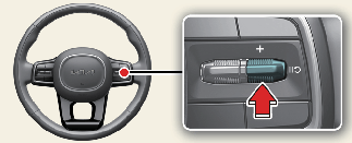 När du vill återuppta den manuella fartbegränsaren efter att den varit pausad, tryck på knappen (+), (-), (