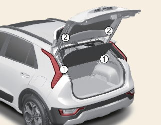 Придерживая шнур шторки для багажника (2), вставьте его в верхний крючок, расположенный под задним стеклом, и используйте его для фиксации.