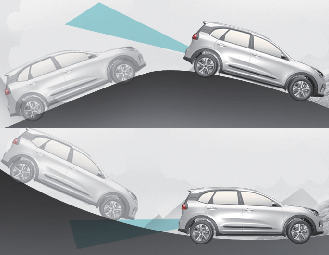 Es posible que la Asistencia de Prevención de Colisión en Punto Ciego no funcione correctamente al conducir por una carretera en pendiente. Es posible que la función no detecte el vehículo que está en el carril contiguo.
