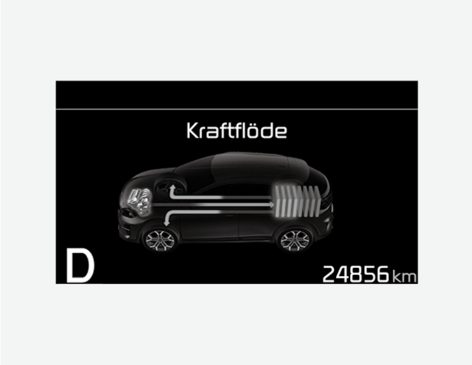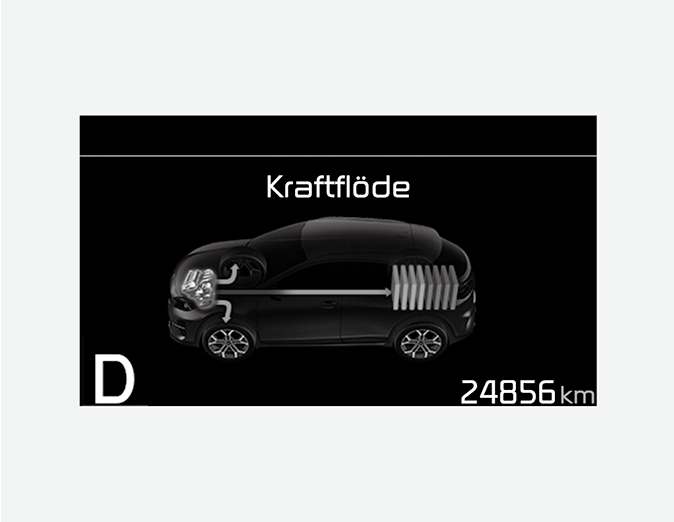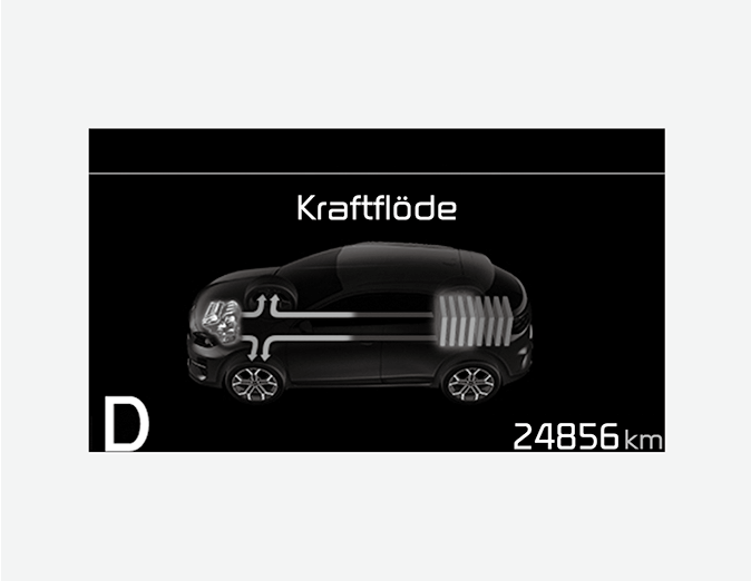 Bilen står stilla och bränslemotorn laddar hybridbatteriet.