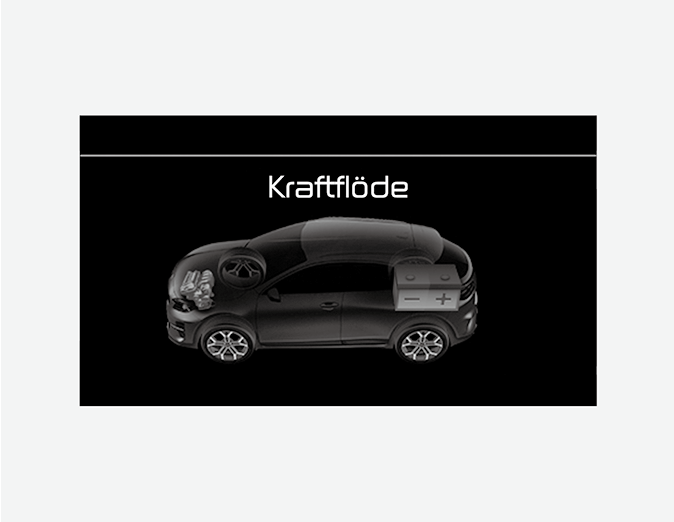 Mildhybridsystemet informerar föraren om kraftflödet i olika driftslägen. Under körning anges det aktuella energiflödet i 11 lägen.