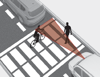 När en fotgängare eller cyklist befinner sig mellan dig och fordonet framför