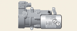 На мітці компресора вказано тип компресора, який установлений у вашому автомобілі, а саме модель, номер деталі постачальника, виробничний номер, холодоагент (1) і фреон (2).