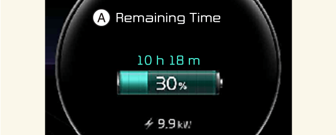 Якщо ви відкриєте водійські двері під час заряджання, приблизний час заряджання також відображатиметься на комбінації приладів приблизно протягом 1 хвилини. Якщо використовується заряджання за графіком або заплановано ввімкнення кондиціонера чи обігрівача, замість приблизного часу зарядки відображається «--».