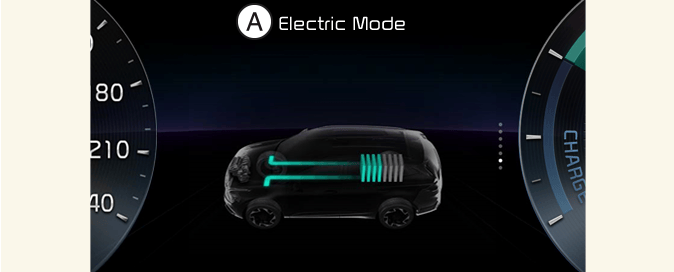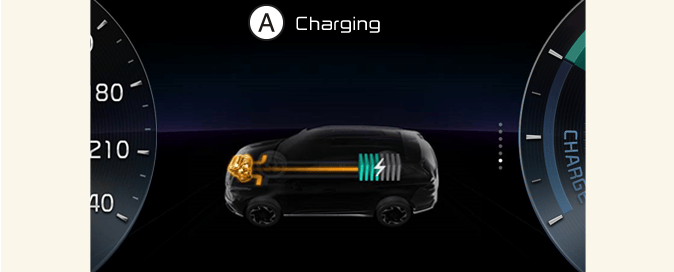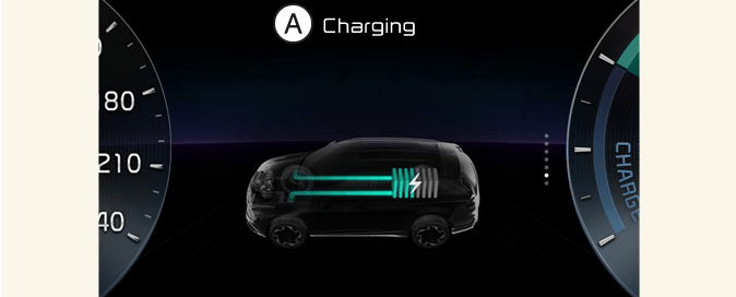 Система електромобіля інформує водія про потік енергії в різних режимах роботи. Під час руху поточний потік енергії розділяється на 11 режими.