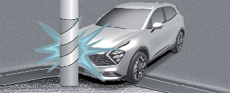 Подушки безпеки можуть не спрацювати, якщо автомобіль урізається в такі об’єкти, як стовпи ЛЕП або дерева, коли удар припадає на порівняно малу площу, а сила від удару не досягає датчиків. |