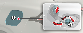 Натисніть на задній центральний край, щоб відкрити кришку горловини паливного бака (1).