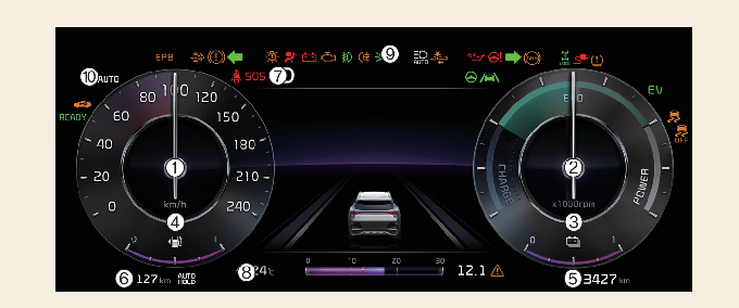 10. Індикатор режиму гібридного електромобіля (гібридний електромобіль)