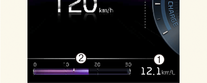 У цьому режимі відображається миттєва витрата палива за останні декілька секунд, якщо швидкість автомобіля є більшою приблизно за 10 км/год (6 миль/год).
