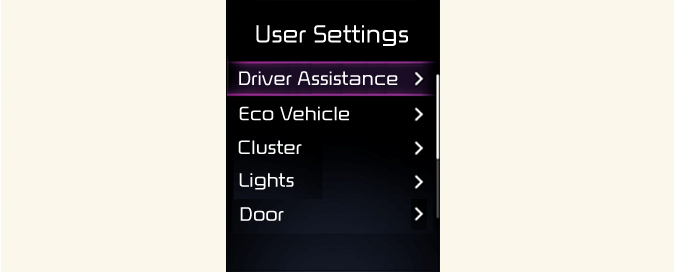 У цьому режимі можна змінити налаштування комбінації приладів, дверей, освітлення тощо.