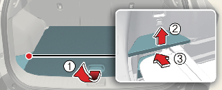 Відкрийте панель для багажу (1) і кришку бічного лотка (2) і тримайте захисний екран для вантажу в лотку (3).