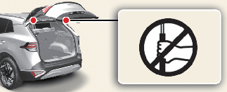 Струмені води під високим тиском не повинні потрапляти прямо на зовнішню кнопку відчинення/зачинення дверей заднього багажного відділення з електроприводом. Це може призвести до небажаного їх відчинення.