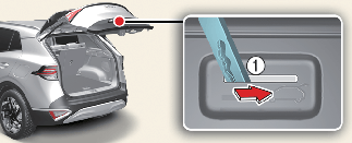 Посуньте замок у напрямку, вказаному стрілкою, щоб розблокувати двері заднього багажного відділення.