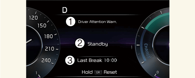 На панелі панелі приладів з’являється попереджувальне повідомлення, і лунає попередження, яке пропонує водієві здійснити зупинку, коли рівень уваги водія впаде нижче 1.