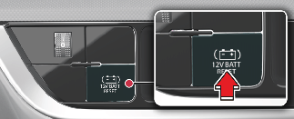 Якщо ви не запустите автомобіль негайно після натискання перемикача скидання акумулятора 12 В, живлення акумулятора 12 В автоматично вимикається за декілька секунд, щоб попередити додаткове розряджання акумулятора 12 В. Якщо акумулятор р12 В відключено до запуску автомобіля, натисніть перемикач скидання акумулятора 12 В ще раз, а потім негайно запустіть автомобіль так, як показано.