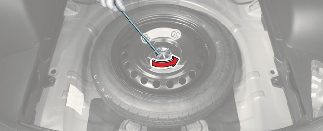 Поверніть болт-баранець кріплення колеса проти годинникової стрілки за допомогою рукоятки домкрата.