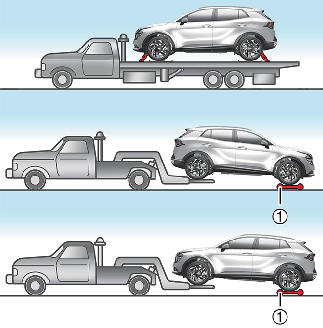 Автомобіль повинен буксируватися з колісним підіймачем і колісними візками або на спеціально обладнаній бортовій платформі зі всіма колесами, піднятими над землею.