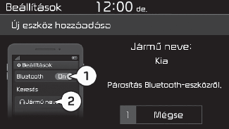 A csatlakoztatni kívánt Bluetooth-eszközön aktiválja a Bluetooth funkciót, majd keresse meg és válassza ki a jármű rendszerét.