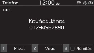 A hívás mobiltelefonra történő átkapcsolásához nyomja meg a vezérlőpanel [1] gombját, majd válassza a Private (Privát) lehetőséget.