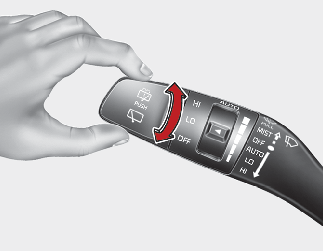 Push the lever away from you to spray rear washer fluid and to run the rear wipers 1~3 cycles.