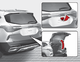 The tailgate swings upward. Make sure no objects or people are near the rear of the vehicle when opening the tailgate.