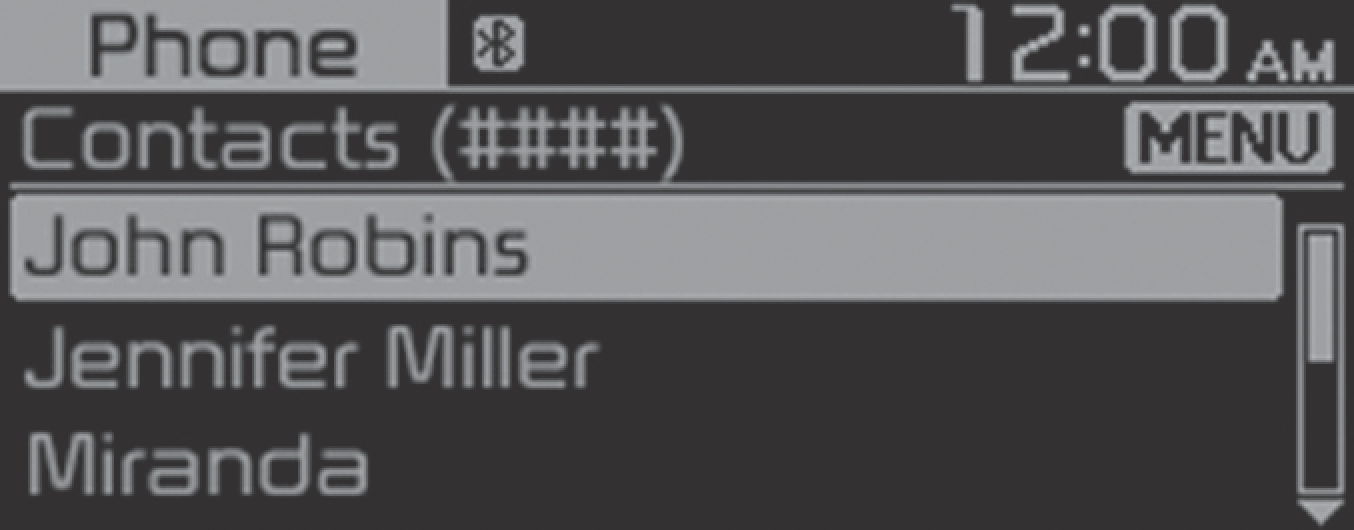 Turn the [TUNE] knob to select the desired contact, and then press the knob to make a phone call.