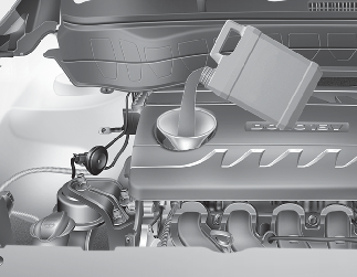 Use a funnel to help prevent oil from being spilled on engine components. Use only the specified engine oil. (Refer to More Details.)