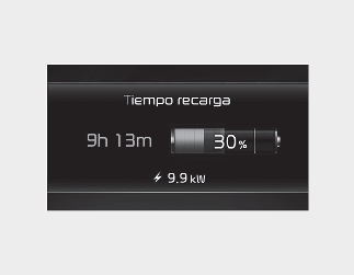Tras iniciarse la carga, el tiempo estimado de carga se muestra en el tablero de instrumentos durante aproximadamente 1 minuto. También se muestra cuando la puerta del conductor está abierta con la carga en curso. Si se ajustó la carga programada, el tiempo previsto para la carga se indica como "- -".
