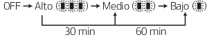 Cada vez que se pulsen las palancas o el interruptor, el ajuste de la temperatura del asiento cambiará como se indica a continuación: