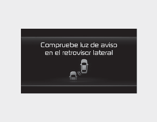 Cuando el testigo de advertencia del espejo de visión lateral no funciona correctamente, aparece el mensaje de advertencia "Check side view mirror warning light" (Compruebe el testigo de advertencia del espejo de visión lateral) en el tablero. Haga inspeccionar la función en un distribuidor Kia autorizado.