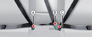 B : boucle d'attache de ceinture de sécurité arrière centrale