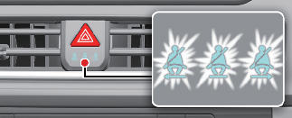 À titre de rappel pour le passager avant, le témoin de ceinture de sécurité du passager avant s'allume pendant environ 6 secondes à chaque fois que le contacteur d'allumage ou le bouton ENGINE START/STOP (démarrage/arrêt du moteur) est placé en position ON (marche), que sa ceinture soit bouclée ou non.