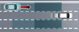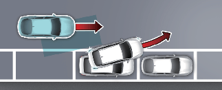 Lorsque vous sortez d’un espace de stationnement en marche avant, si l’assistance à l’évitement de collision dans l’angle mort estime qu’il y a un risque de collision avec un véhicule approchant dans l’angle mort, la fonction vous aide à éviter la collision en appliquant les freins.