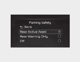 If 'Rear Active Assist' is selected, the function will warn the driver and assist with braking when a collision with a pedestrian or an object is imminent.