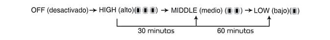 Cada vez que se pulse los botones, el ajuste de la temperatura del asiento cambiará como sigue: