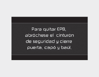 Si intenta conducir pisando el pedal del acelerador con el EPB accionado, pero no se libera automáticamente, se emitirá una advertencia una vez y aparecerá un mensaje.