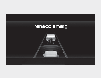 Para avisar al conductor de que la frenada de emergencia será asistida, el mensaje de advertencia "Emergency Braking" (Frenado de emergencia) aparecerá en el tablero, se emitirá un sonido de advertencia y el volante vibrará.