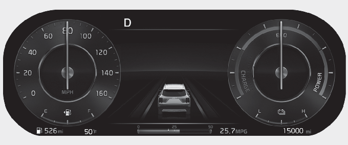 Type A is the basic theme of the full LCD type cluster and provides different graphic styles depending on drive mode.