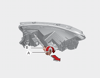 Remove the bulb (B) from the socket (A) by pressing it in and rotating it counterclockwise until the tabs on the bulb align