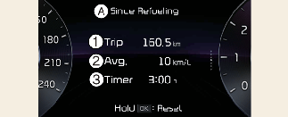 Wenn die Fahrertür nach dem Abschalten des Fahrzeugs geöffnet oder das Fahrzeug nach Ablauf von 3 Minuten wieder eingeschaltet wird, wird der Fahrtinformationsbildschirm zurückgesetzt.
