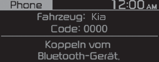 Wenn der Eingabebildschirm für den Passkey auf dem Bluetooth-Gerätedisplay angezeigt wird, geben Sie als Passkey „0000“ ein; dieser Passkey wird auf dem Systembildschirm angezeigt.