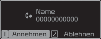 Wenn die Anrufinformationen in Ihrer Kontaktliste gespeichert sind, werden Name und Telefonnummer des Anrufers angezeigt. Wenn die Anruferinformationen nicht in Ihrer Kontaktliste gespeichert sind, wird nur die Telefonnummer des Anrufers angezeigt.