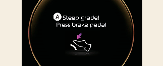A: Starkes Gefälle! Press brake pedal (Gefälle! Bremse betätigen)