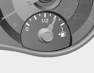 Em inclinações ou curvas, o ponteiro do indicador do nível de combustível poderá oscilar, ou a luz de aviso de nível reduzido de combustível poderá iluminar-se mais cedo do que o habitual devido ao movimento do combustível no depósito.