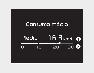 Este modo exibe o consumo de combustível nos últimos segundos quando o veículo circula a mais de 10 km/h (6,2 mph).