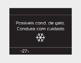 Se o aviso de estrada com gelo aparecer durante a condução, deverá conduzir com mais atenção e segurança, evitando excessos de velocidade, acelerações rápidas, travagens bruscas, curvas acentuadas, etc.