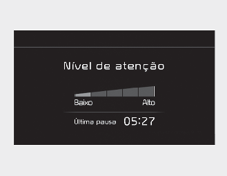 O nível de atenção do condutor é apresentado numa escala de 1 a 5. Quanto mais baixo for o número, menor será o nível de atenção do condutor.