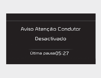 O Aviso de atenção do condutor fica no estado preparado e apresenta o ecrã “Disabled” (Desativado) nas situações que se seguem.